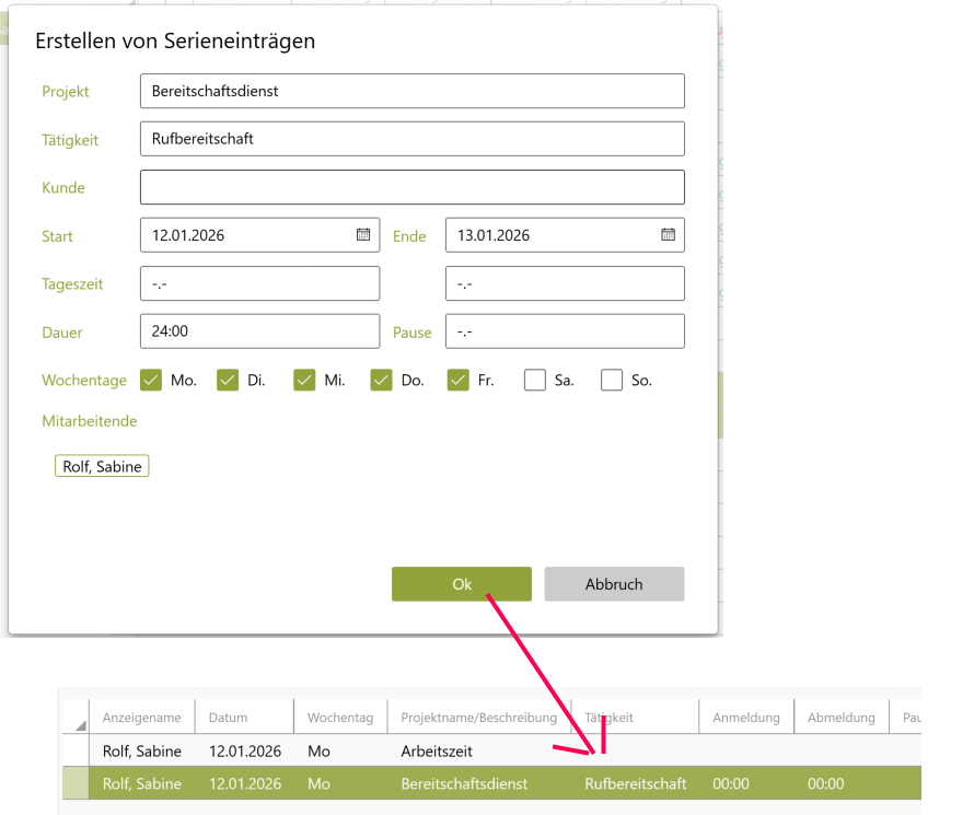 Es sollte auch möglich sein, Serieneinträge nur mit einer Dauer von z.B. 16. Std anzulegen.